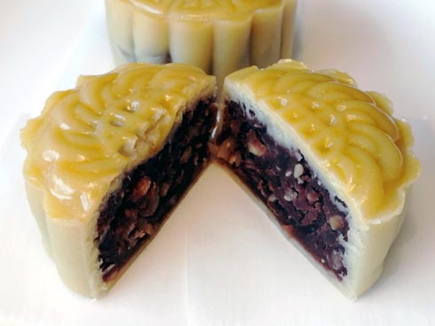 | 普段、サラダ油で皮の生地を作る替わりに無塩バターを使い、小麦粉とはちみつを合わせて皮を作ります。餡は市販のこしあん或いは粒あんとクルミ、ピーナッツ、アーモンド、カシューナッツとゴマなどを使って作る洋風の味に変わった月餅です。 |