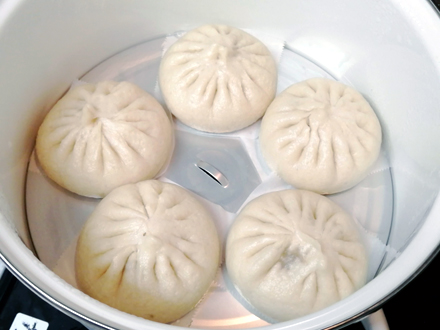 | 一人の方は肉まんを5個作る予定です。出来上がった肉まんはその場で召し上がってもよいし、持ち帰ってもよいです。 |