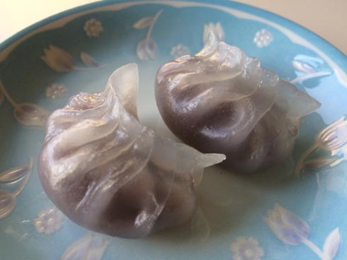 | 皮は浮き粉と片栗粉を使います。餡は市販のこしあんを使います。 |